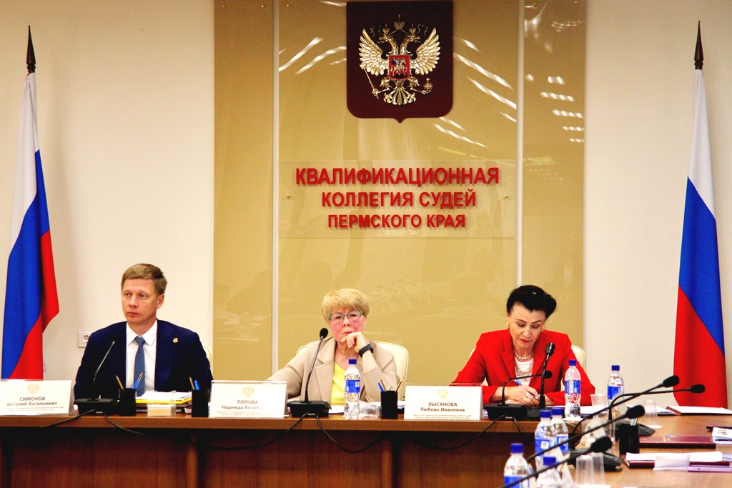 Семь кандидатов на вакантные должности судей получили рекомендации на состоявшемся сегодня, 15 июля мая 2025 года, заседании квалификационной коллегии судей Пермского края: Татьяна Хаснуллина – на должность судьи Пермского краевого суда; Екатерина Спелкова – на должность судьи Пермского краевого суда; Алина Королькова – на должность судьи Мотовилихинского районного суда г. Перми; Надежда Афанасьева – на должность судьи Александровского городского суда Пермского края; Юлия Малькова – на должность судьи Пермского районного суда Пермского края; Оксана Микова – на должность судьи Чернушинского районного суда Пермского края; Анна Стрелкова – на должность мирового судьи судебного участка №2 Верещагинского судебного района Пермского края. Члены квалификационной коллегии судей удовлетворили представления председателя Пермского краевого суда Александра Суханкина о проведении квалификационной аттестации судей в соответствии со статьей 20.2 Закона Российской Федерации «О статусе судей в Российской Федерации» и присвоении судьям очередных квалификационных классов. На заседании были также рассмотрены заявления судей о прекращении полномочий в соответствии с подпунктом 1 пунктом 1 статьи 14 Закона Российской Федерации «О статусе судей в Российской Федерации». |