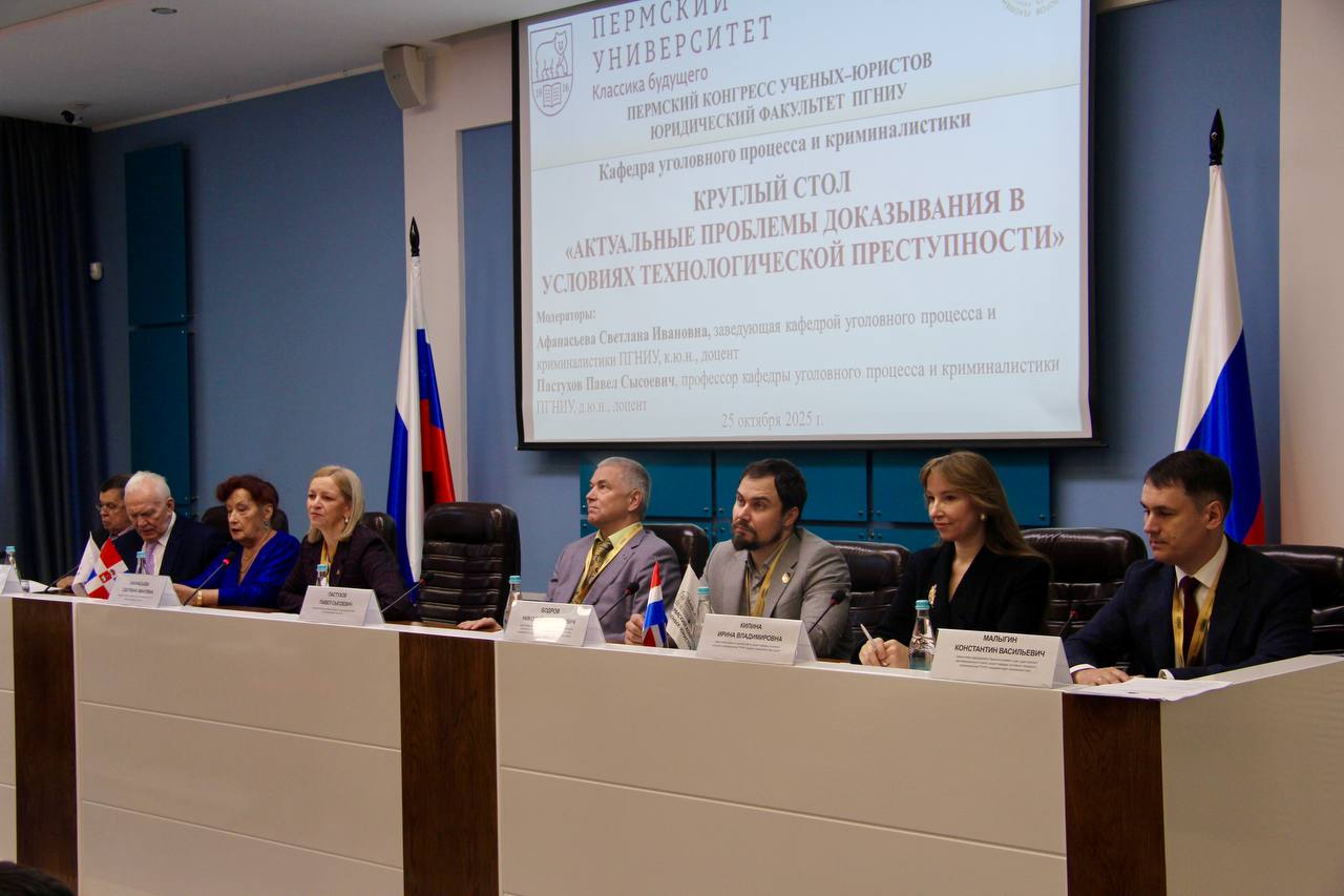 В Перми 24-25 октября успешно прошел юбилейный XV Пермский конгресс ученых-юристов — авторитетная федеральная площадка для диалога между юридической наукой и практикой. Мероприятие, объединившее более 400 экспертов из 10 регионов России, было посвящено осмыслению фундаментальных правовых категорий в стремительно меняющемся технологическом ландшафте. Одним из наиболее практико-ориентированных событий программы стал круглый стол «Актуальные проблемы доказывания в условиях технологической преступности», состоявшейся 25 октября в Пермском краевом суде. С вступительным словом к участникам обратился заместитель председателя Пермского краевого суда Константин Малыгин: «XV Пермский конгресс ученых-юристов задал важный вектор для развития не только академической науки, но и правоприменительной практики». По словам Константина Васильевича, подобные мероприятия укрепляют статус Пермского края как территории, где уважают закон и создают условия для его эволюции в ответ на вызовы времени. Модератор дискуссии, заведующая кафедрой уголовного процесса и криминалистики Пермского государственного национального исследовательского университета Светлана Афанасьева, отметила ключевые векторы обсуждения: проблемы воплощения конституционных норм в уголовном процессе и комплексные правовые и технические вызовы, связанные с доказыванием на фоне роста киберпреступности. В рамках круглого стола заместитель председателя краевого суда Константин Малыгин подготовил доклад на тему «Алгоритмизация деятельности по отправлению правосудия как способ повышения ее качества и эффективности», в котором поднял актуальные вопросы цифровой трансформации правосудия. В рамках деловой программы в стенах Пермского государственного национального исследовательского университета аналитический взгляд на текущую ситуацию представила председатель третьего судебного состава Пермского краевого суда Екатерина Быстрова. В своем выступлении «О тенденциях судебной практики по рассмотрению уголовных дел о преступлениях против собственности» она привела статистику: «Несмотря на то, что наибольшее количество лиц осуждается судами Пермского края именно за преступления против собственности, за последние 5 лет наметилась тенденция к их сокращению с 56,6% до 46,9% от общего количества осужденных, что соответствует общероссийской тенденции», — отметила Екатерина Леонтьевна. «Однако именно в этой категории дел наблюдается самый высокий уровень повторной преступности», — обозначила она. Дополнил картину судебной практики письменным докладом заместитель председателя Пермского краевого суда в отставке Ян Заборский. Его доклад «Малозначительность деяний, посягающих на собственность: проблемы и тенденции судебной практики» был посвящен тонкой грани между правонарушением и преступлением. |