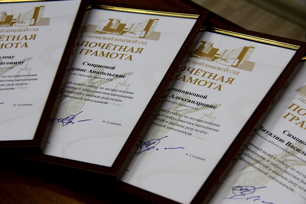 | Признание заслуг: судьям Пермского краевого суда вручили почетные грамоты и объявили благодарность | версия для печати |