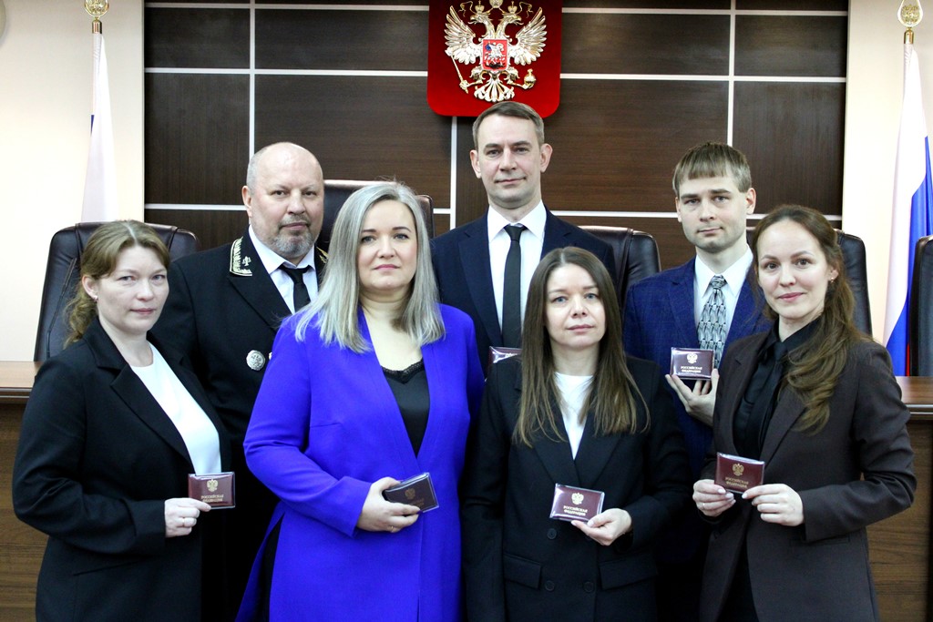 Сегодня, 20 марта 2026 года, в соответствии с Указом Президента Российской Федерации Владимира Путина № 93 от 16 февраля 2026 года в Пермском краевом суде в торжественной обстановке вручены удостоверения вновь назначенным федеральным судьям Пермского края: Андрею Зюзикову – председателю Октябрьского районного суда Пермского края; Ксении Каробчевской – заместителю председателя Дзержинского районного суда г. Перми; Оксане Ильиных – судье Орджоникидзевского районного суда г. Перми; Евгению Васильеву – судье Березниковского городского суда Пермского края; Василию Бермесу – судье Краснокамского городского суда Пермского края; Наталье Шерстобитовой – судье Кунгурского городского суда Пермского края; Анастасии Карповой – судье Чусовского городского суда Пермского края. Удостоверение судьи за подписью Президента России символизирует высокую степень доверия со стороны государства и является подтверждением их высокой квалификации. Вручая удостоверения, председатель краевого суда Александр Суханкин поздравил судей с назначением, пожелал им здоровья и больших успехов в отправлении правосудия. Справка: Процедура вручения удостоверений предусмотрена Положением «О порядке оформления и вручения судьям федеральных судов удостоверения судьи», утвержденным Указом Президента Российской Федерации В.В. Путина от 9 сентября 2000 года № 1624. |