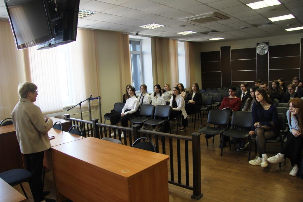 В рамках правового урока более 20 десятиклассников и одиннадцатиклассников Лицея №2 г. Перми посетили сегодня краевой суд. Школьникам представилась возможность посетить два открытых судебных заседания в качестве слушателей. Ребята смогли в режиме реального времени наблюдать за ходом судебных заседаний по апелляционным жалобам осужденных, ознакомиться с практической стороной профессии судьи изнутри, осмыслить ее важность, пользу и сложность. Также старшеклассникам выдался шанс пообщаться с глазу на глаз с судьей краевого суда, председателем квалификационной коллегии судей Пермского края Надеждой Поповой. Ребята с интересом слушали рассказ Надежды Васильевны о профессии судьи и о том сложном профессиональном пути, который нужно пройти, чтобы стать служителем Фемиды. Кроме того, Надежда Попова поделилась личным опытом работы судьей и привела наиболее яркие примеры из своей профессиональной практики. Кроме того, ребята посетили Музей судейского сообщества Пермского края, канцелярию по уголовным делам Пермского краевого суда. |
