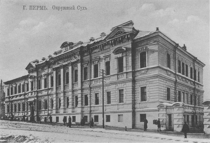 Торжественное открытие Пермского окружного суда состоялось 1 сентября 1874 года. Расположился окружной суд в доме на углу улиц Вознесенской (ныне Луначарского) и Красноуфимской (ныне Куйбышева). В наши дни в этом здании находится главный корпус Пермской медицинской академии. Исторический облик здания, надо сказать, остался практически без изменений.