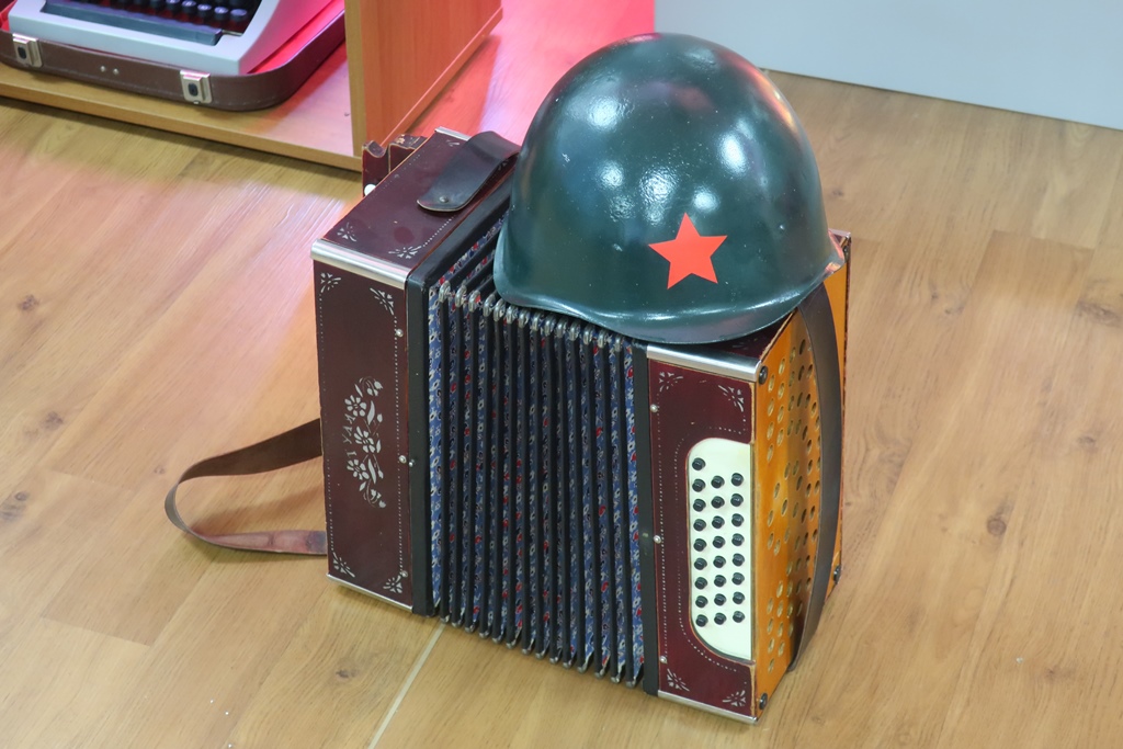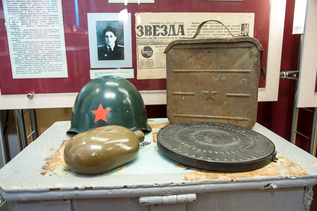 В музейной экспозиции представлена солдатская каска СШ-40 (стальной шлем образца 1940 года), изготовленная в г. Лысьва (Молотовская область).