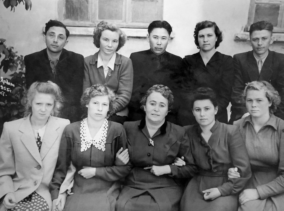 Это были уже вторые выборы в суд, впервые ее избрали в судьи в декабре 1957 года. В результате вторых выборов Валентина Степановна была избрана народным судьей, а позднее стала и председателем Ленинского райнарсуда г. Оренбурга. Рядом с этими документами оказывается фотография, на которой несколько человек – мужчины и женщины.